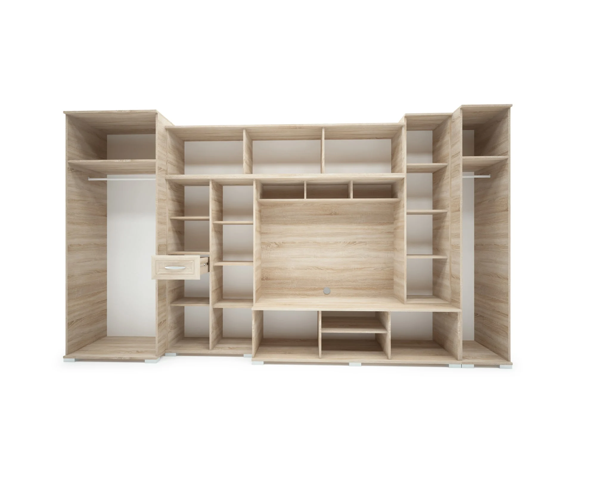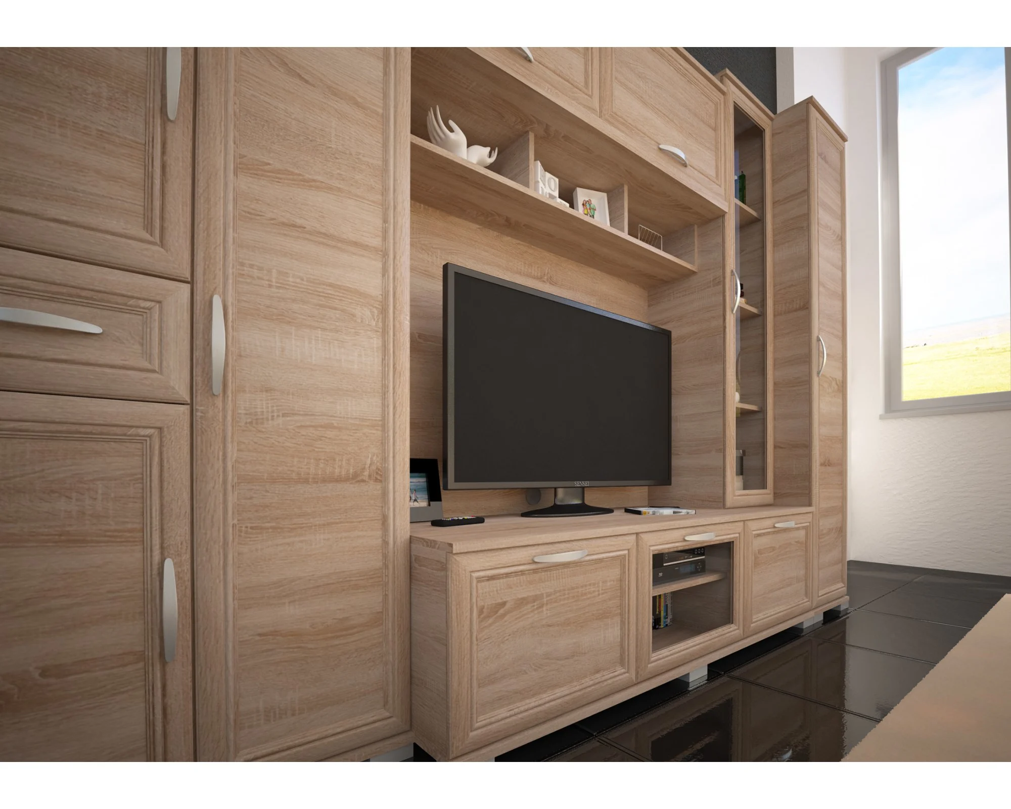 Klasszikus nappali szekrénysor 370, 410 cm-es változatban kapható. Sonoma tölgy színben érhető el, amely a legtöbb otthonba könnyedén beilleszkedik. Nappali szekrénysor szerepe mellett méretének köszönhetően nem okoz gondot a ruhái tárolása sem. Andorra szekrénysorunk bútorlapos fronttal is elérhető, keretléc nélküli változatban. Rusztik fehér vagy matt sötétszürke üvegajtó kerettel, illetve fiókelővel is rendelhető.
