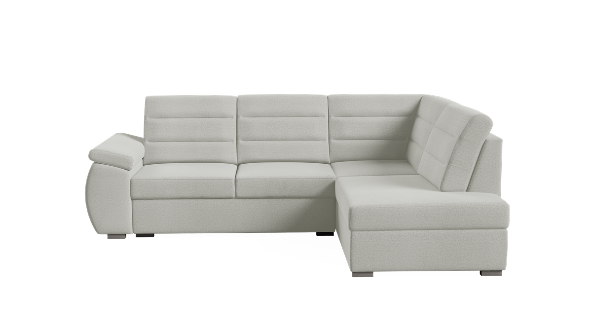 magas fekhelyes, jobbos-balos állásban rendelhető, hátulja szövettel bevonva, automata felemelő mechanika, vízlepergető szövet, HR habszivacs, hullámrugós, ágyazható, ágyneműtartós, 250 – 300 cm szélesség között