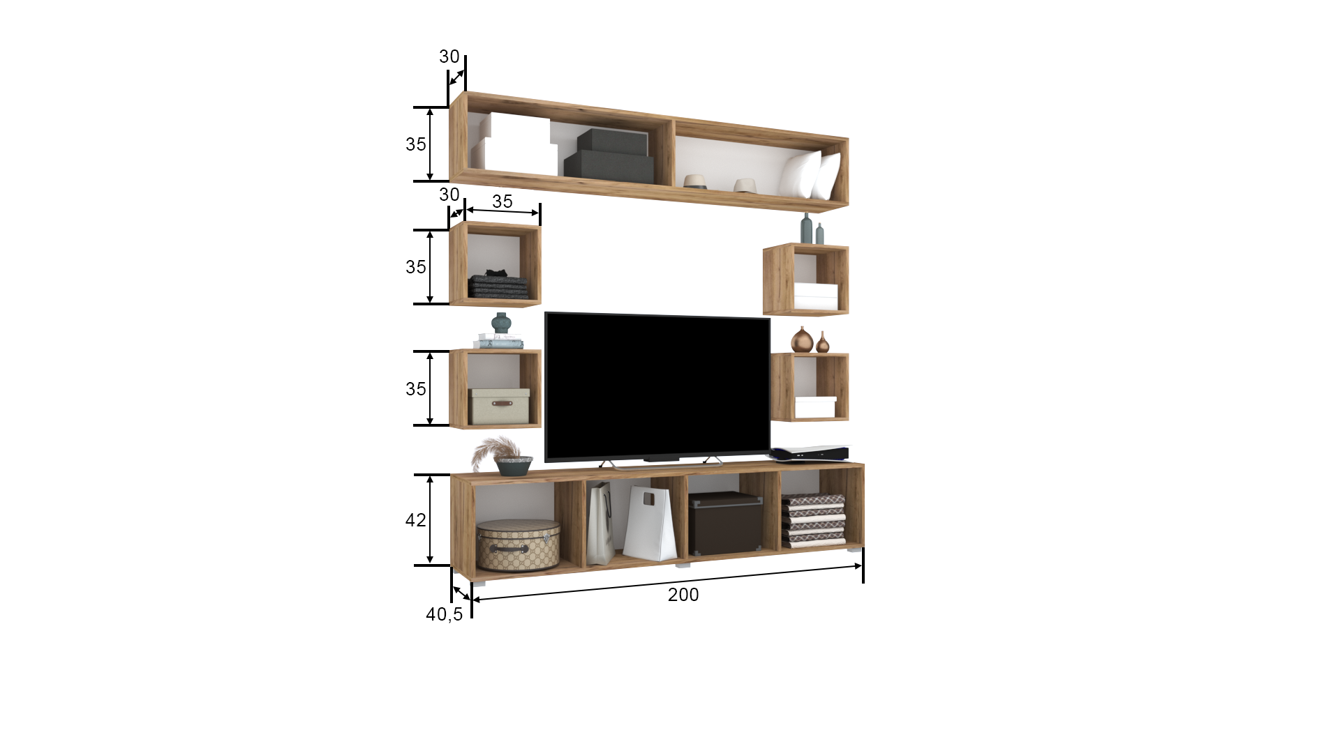 Magasság: 42 cm Szélesség: 200 cm Mélység: 40,5 cm