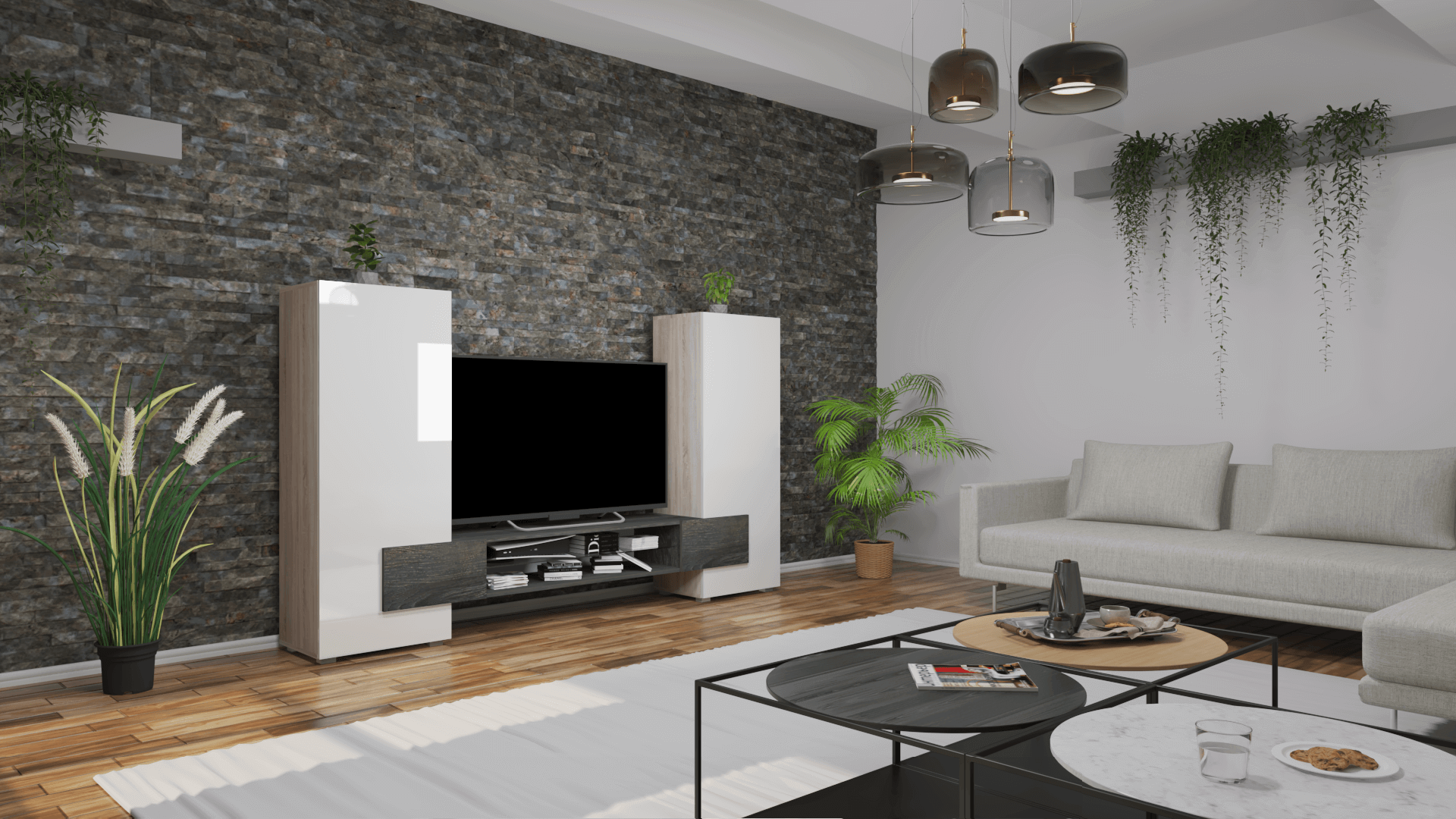 Ultra modern kinézetű Tv-s hátlap, amely teljesen a mai kor igényeinek megfelelően készült. Gyártásánál a funkcionalitás volt az elsődleges, hiszen a tárolóhely éppen csak annyi, amennyi mindenképpen szükséges. Nagyszerű választás munka vagy lakótérbe egyaránt.