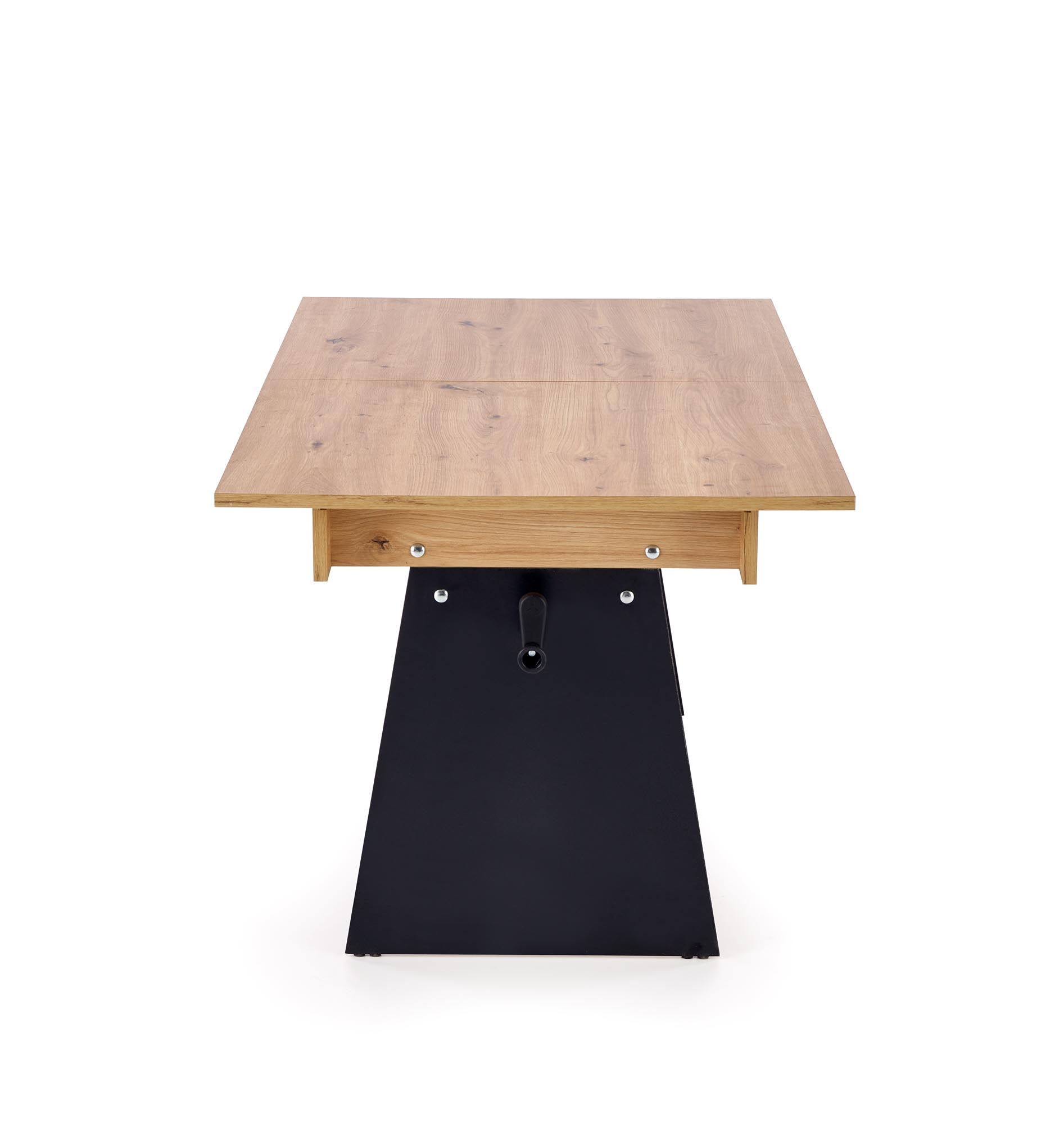 méretek: 120-160/70/61-72 cm, emelhető tetejű dohányzóasztal, anyag: laminált forgácslap, szín: artisan tölgy / fekete
