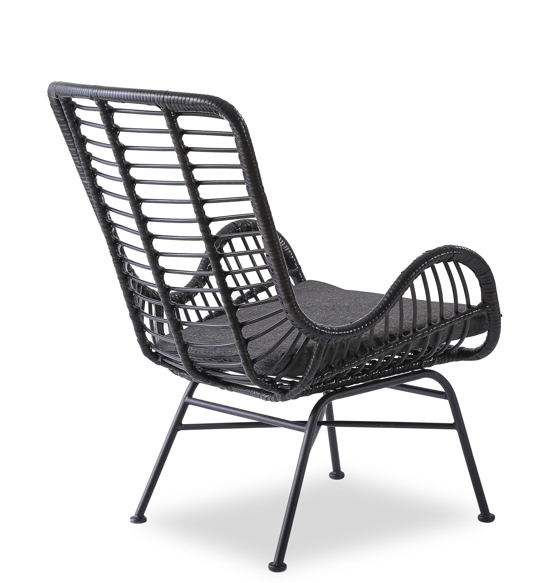 méretek: 71/70/94/45 cm, anyag: műrattan / porfestett acél / szövet, szín: fekete / szürke
