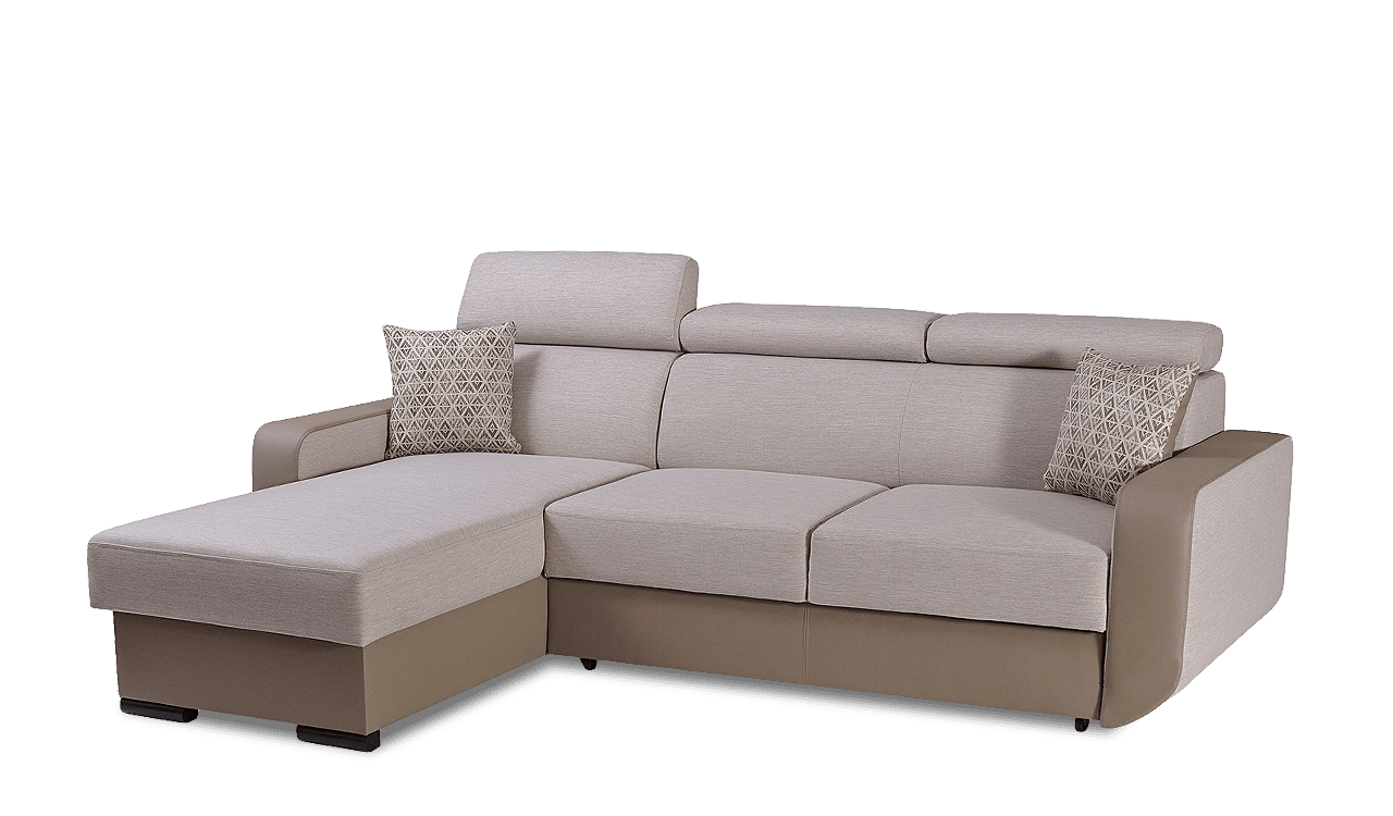 magas fekhelyes, univerzális, hátulja szövettel bevonva, hullámrugós, textilbőr – szövet kombinált, ágyazható, ágyneműtartós, állítható fejtámla, 250 cm szélességig