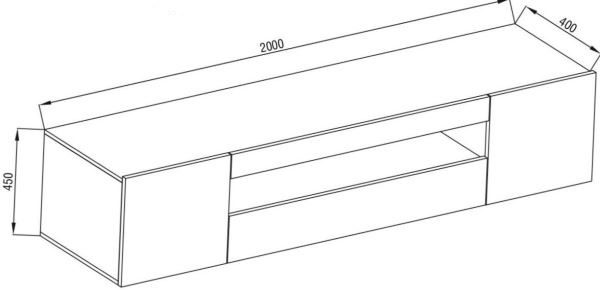 - TV szekrény: 200 cm x 45 cm x 40 cm