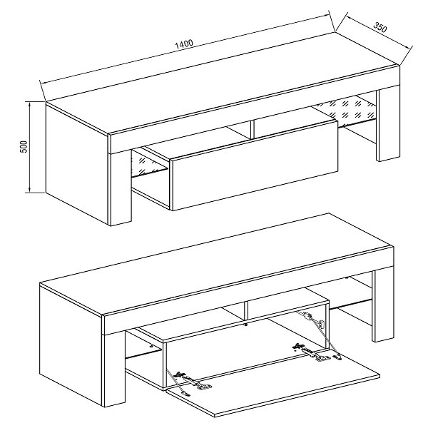 - TV szekrény: 140 cm x 50 cm x 35 cm