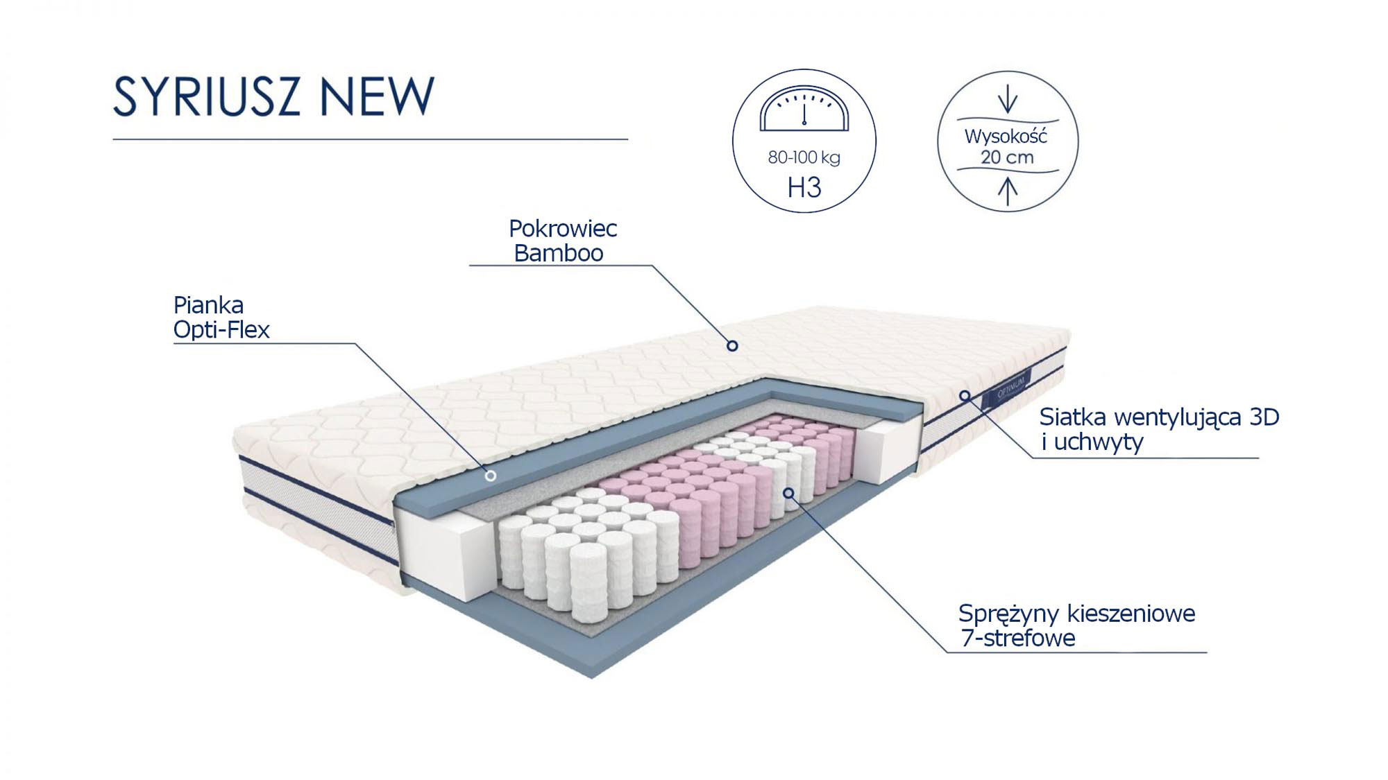méretek: 140/200 cm, belső: 7-zónás zsákrugós rendszer, távtartó kárpitozás, Opti-flex hab