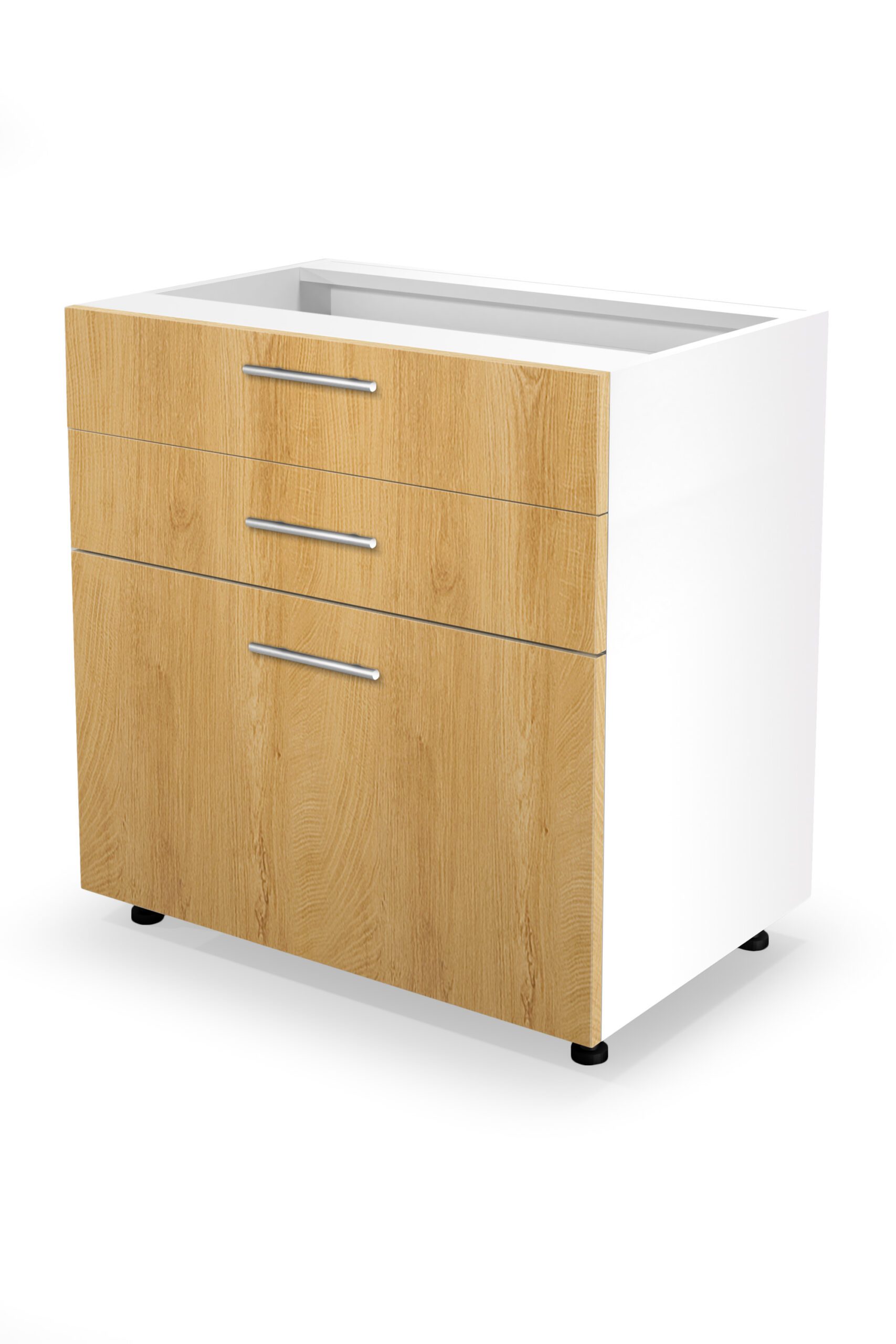 méretek: 80/82/52 cm, anyag: laminált faforgácslap / magasfényű MDF, szín: fehér/mézes tölgy